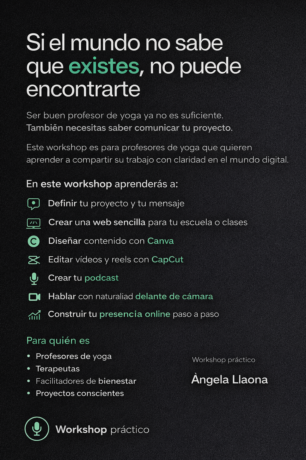 “Después de muchos años trabajando con la voz y la comunicación, creé Glotistudio para acompañar a profesionales y equipos a comunicar con más claridad, calma y presencia.”